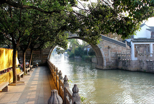 六朝古刹寒山寺始建于梁天监年间(502年-527年),但它的闻名于世要归功于唐代诗人张继。当年张继进京赶考,名落孙山,郁郁还乡,途经苏州,夜宿枫桥,触景生情,于是写下了千古绝唱的《枫桥夜泊》:月落乌啼霜满天,江枫渔火对愁眠;姑苏城外寒山寺,夜半钟声到客船。